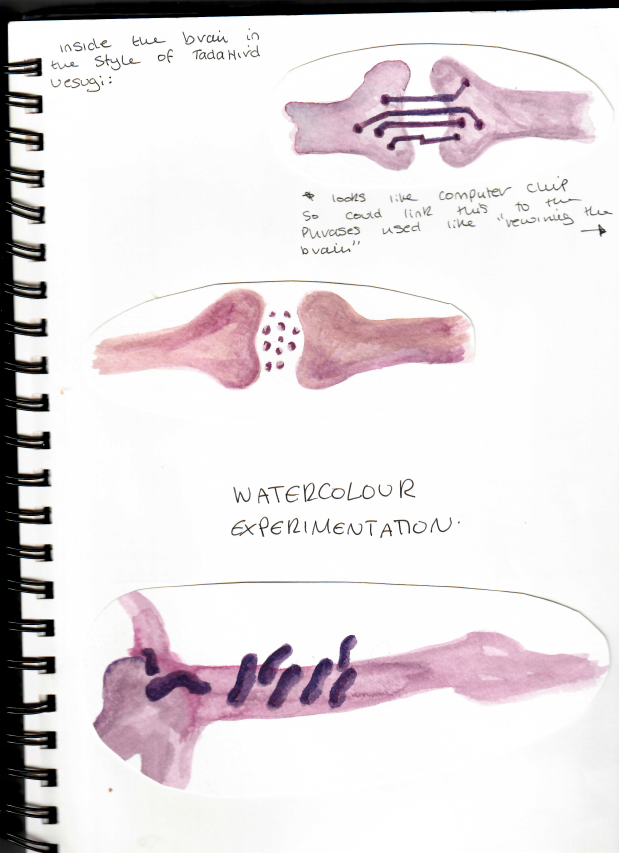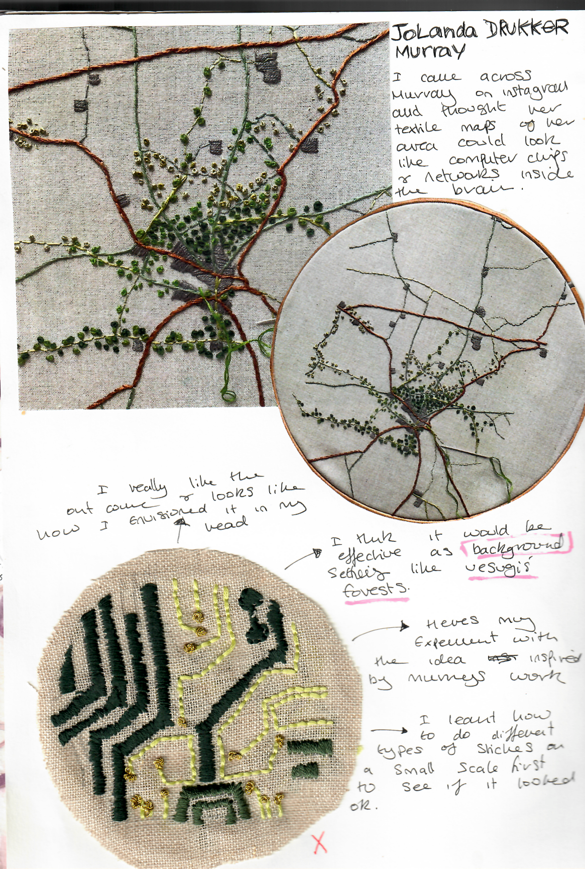 sewing on fabric and watercolour