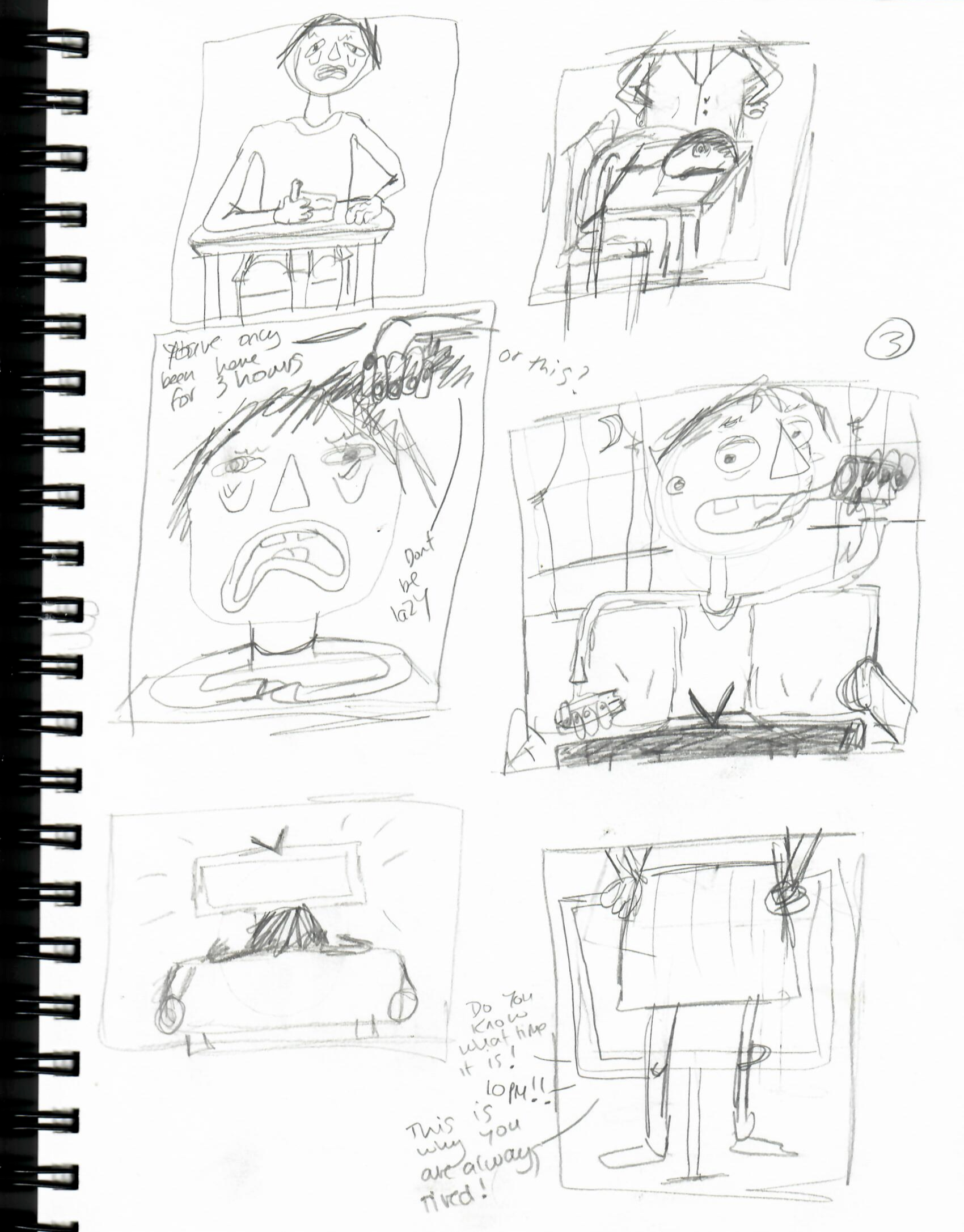 Scamps, Sketches of layout and storyboarding